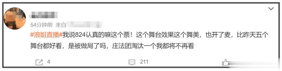 《浪姐7》热度之所以这么高,就是因为节目组主打“全开麦无修音直播”的概念,观众也get到了直播的魅力。遗憾的是,一公舞台上半场纯vocal组开麦,而唱跳组选择对口型,观众可以接受难听,但不接受假唱。