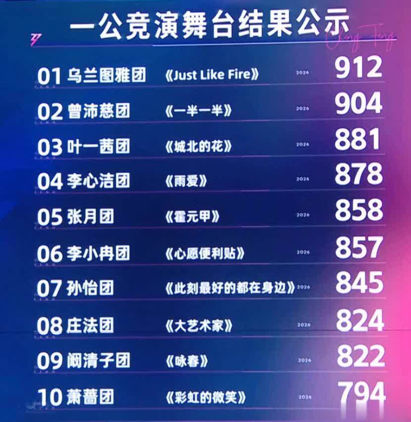 本以为庄法团拿到824票已经很不合理了,没想到更不合理的出现了,萧蔷团火力全开仅获得794票,实力突出的李心洁团拿到878票,而发音问题明显的乌兰图雅团拿到了912票,这个成绩在整个一公舞台排名第一,只能说现场观众的喜好确实让人费解。
