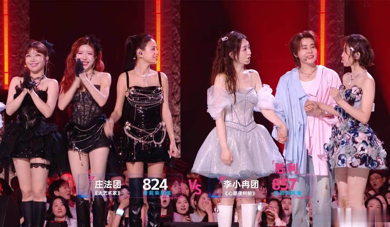 庄法团获得824票,李小冉团获得857票,相信这个结果出乎很多人的意料。但在《浪姐》的舞台上一切皆有可能,它依旧是全自动选秀,比拼的不是舞台绝对实力,咖位、人气、话题也是考量的因素,只能说观众太溺爱李小冉团了。